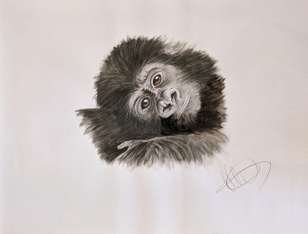 To win these STUNNING pieces of ORIGINAL art all you have to do is email your bid to protectallwildlife@btinternet.com by the 7th February. Please state whether you are bidding on Lot 1 Sleepy Chimp or Lot 2 Baby Gorilla.