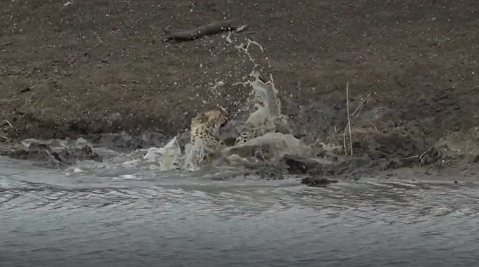 The cheetah can be seen struggling with the croc as he gets pulled under, but the force of the attack is just too much for him.