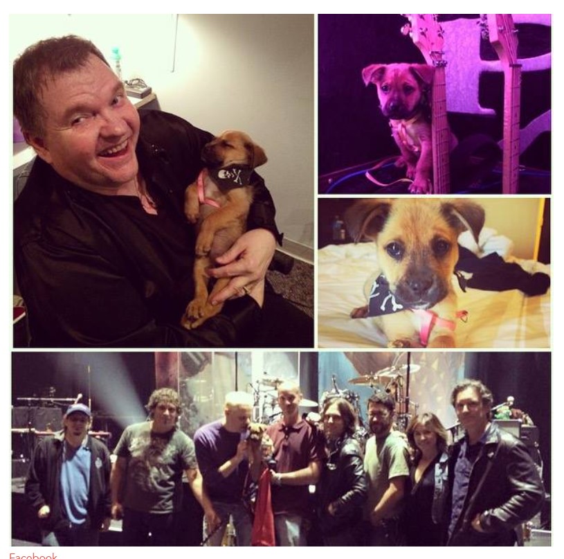 They posted on their Facebook page a picture of the puppy they rescued. The puppy joined the band on the road and they named her Little Ms. Karma. The puppy temporarily joined them on tour and adjusted well as the band took turns giving her lots of love.