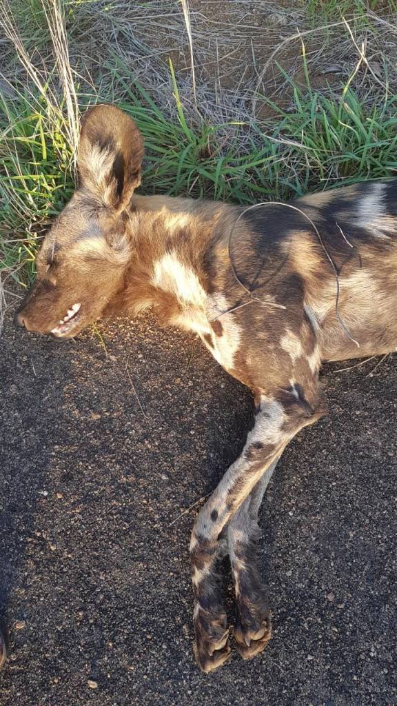 A WILD DOG CAUGHT IN A SNARE. PHOTO BY KRUGER NATIONAL PARK