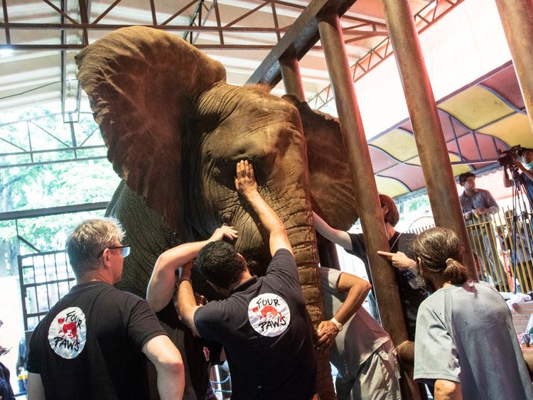 Four Paws Vets perform dental treatment on Madhubala at Karachi Zoo.