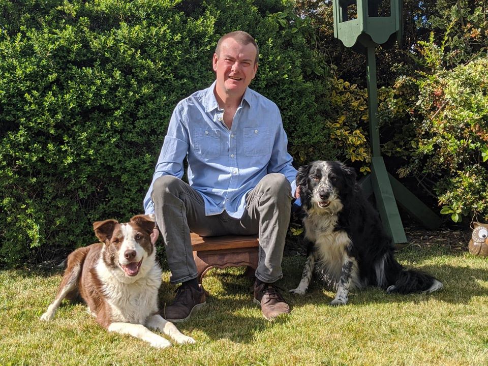 DR LINCOLN PARKES AND ONE OF THE DOGS HE HAS HELPED MOBILISE