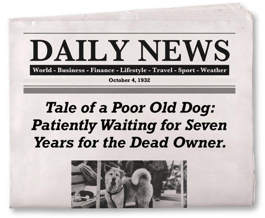 A major Japanese newspaper reporter picked up the story of Hachiko in 1932 and published it, which led to Hachiko becoming a celebrity all over Japan.
