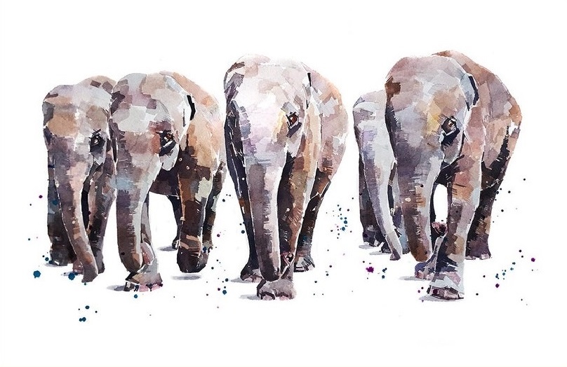 This ORIGINAL watercolour by Eddie Kagimu is titled ‘Elephants Out And About’ and depicts a group of young Elephants, the future of the herd.