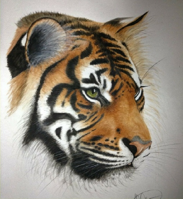 This is an ORIGINAL watercolour, pastel and pencil study of a Tiger by wildlife artist Milo. This STUNNING piece measures 410 x 540mm.