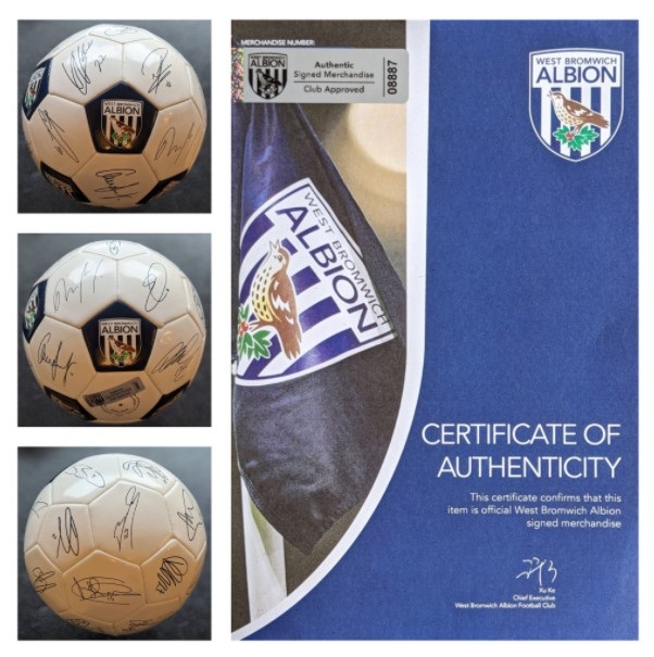 A football signed by the full squad and manager of West Bromwich Albion football club. It comes with a Certificate of Authenticity.