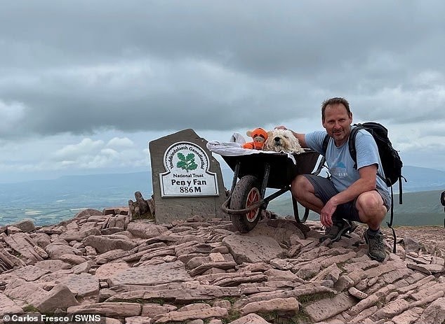 A dog owner whose pet dog was dying from leukaemia pushed him to the top of Pen y Fan in a wheelbarrow for “one final adventure together”.Carlos Fresco, a hotelier from London, had owned 10-year-old Monty since he was a puppy and the pair had always loved going on long walks together all around the UK.But, after the Labradoodle fell ill 18-months ago, he realised they only had a certain amount of time left and knew exactly what he had to do.